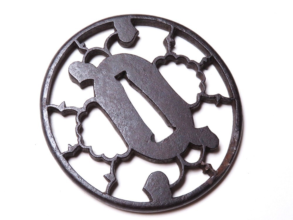 - 【10783】刀装具 (検/甲冑/刀/縁頭) 江戸~明治 鉄地 透かし 鍔(初品・買取品)