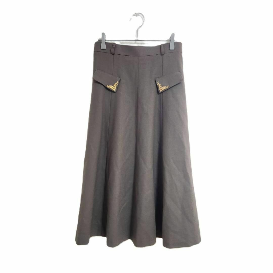 - 新品 フレアスカート カーキ系 9号 M おしゃれ 刺繍 シンプル 上品 秋冬