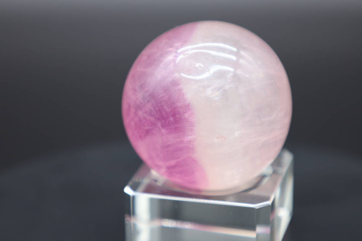 - ピンクホワイトバイカラーフローライト丸玉スフィア蛍石FLU250701