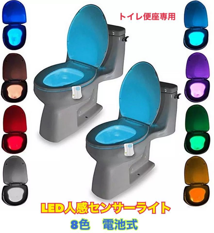 - トイレ 便座 LEDライト 人感センサー 電池式 8色 カラフル ライト 省エネ LEDセンサーライト レインボー【送料無料】