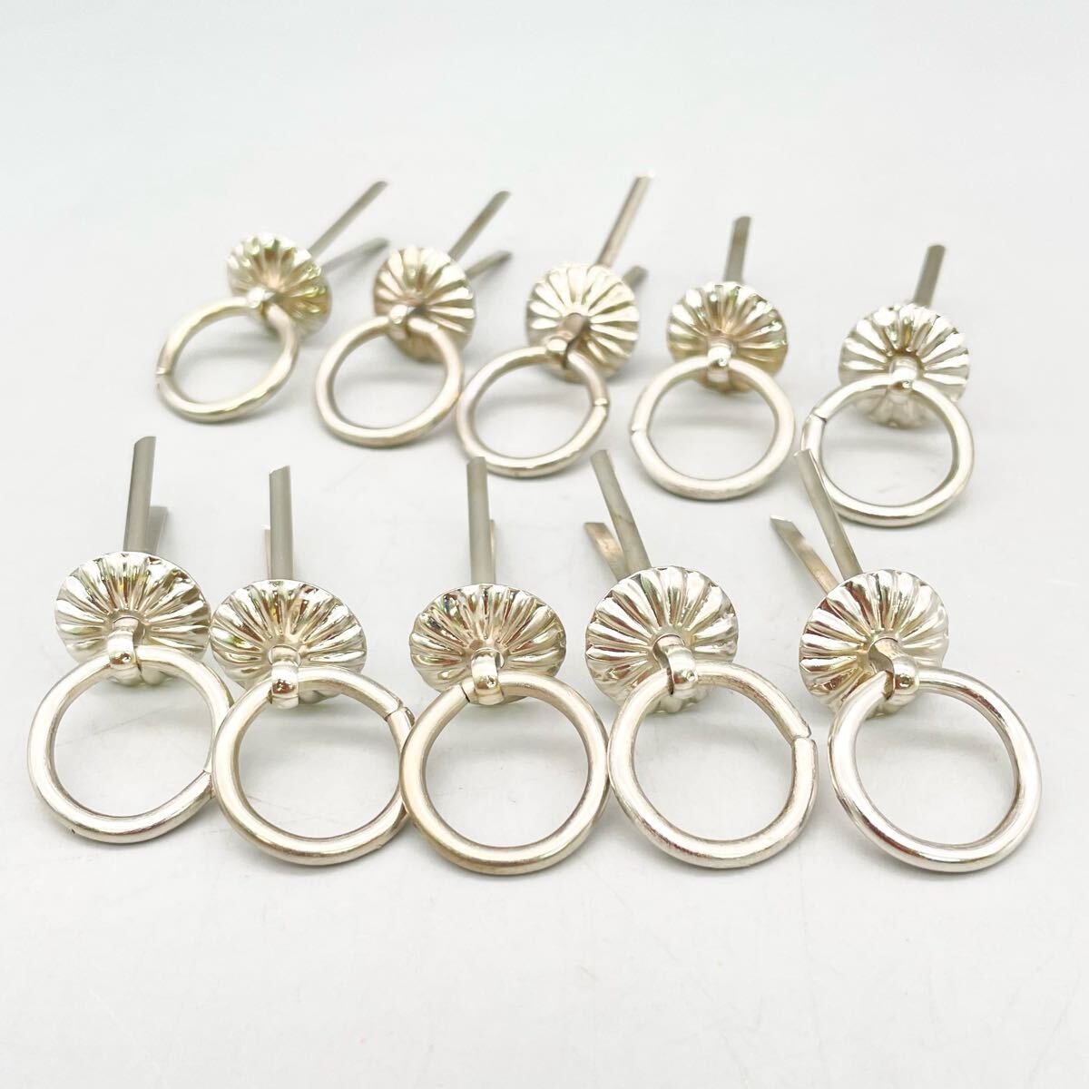 - [送料全国一律360円] 和風 菊座 丸カン 取手 リング 飾り 装飾 金具 10点 シルバー 仏具 和笥 タンス 扉 部品 金物屋 在庫品 まとめ 未使用