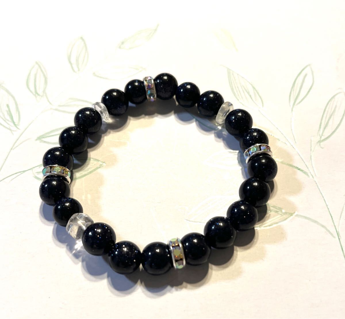 > ハンドメイド☆天然石 パワーストーンブレスレット ブルーゴールドストーン ロンデル クリスタルさざれ石 天然石ブレス 8㎜玉 約15㎝