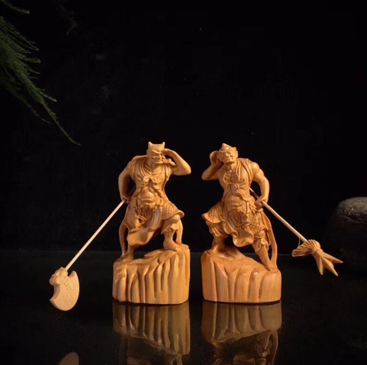 - 新品高級木彫り 柘植製 左右護法千里眼順風耳 東洋彫刻 細密彫刻 高12.5cm