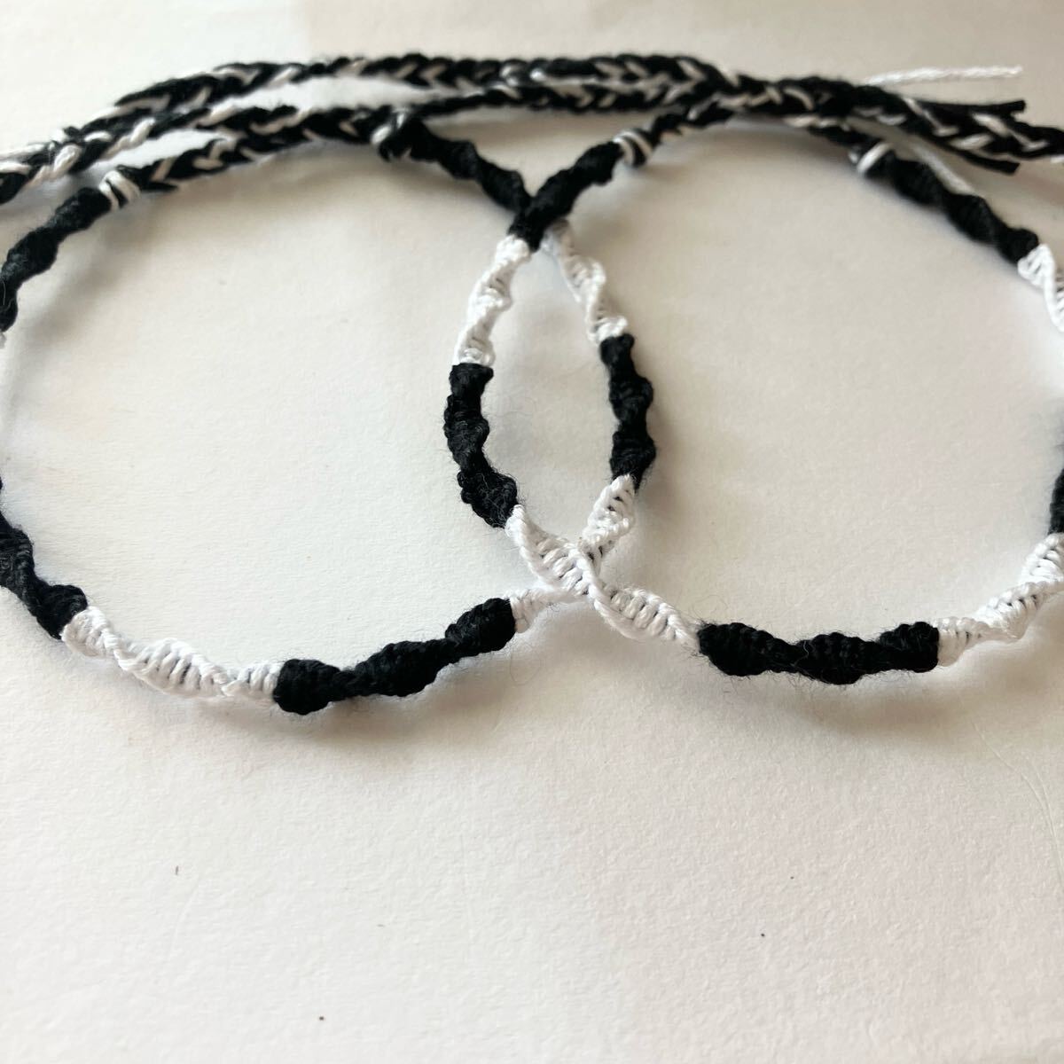 - ミサンガ★アンクレット 黒白ボーダー2本
