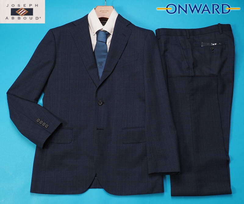 - 新品15.2万円 オンワード樫山 JOSEPH ABBOUD 日本製『DELFINO デルフィノ 伊製生地』ウール100% グレンチェック柄 スーツY96(A6)紺 832457