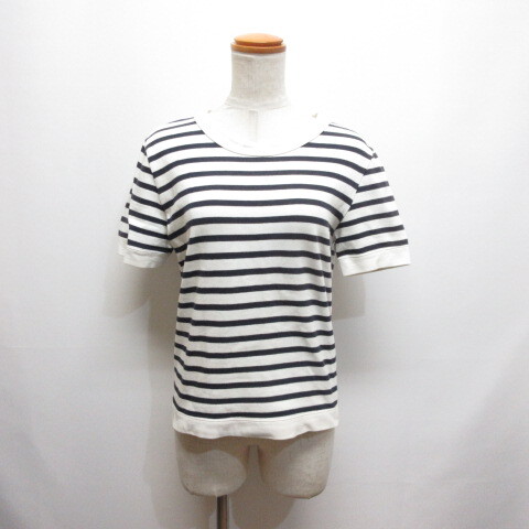 > グランドパーク ニコル Grand PARK NICOLE ボーダー柄 半袖 カットソー Tシャツ F オフホワイト 日本製 レディース