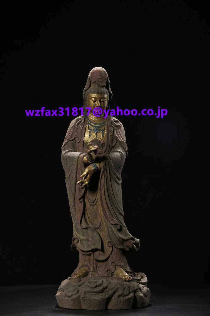 - 楠木木彫漆金観音菩薩造像 楠木細工彫刻★仏教古美術★仏像★細密細工★廃寺旧蔵