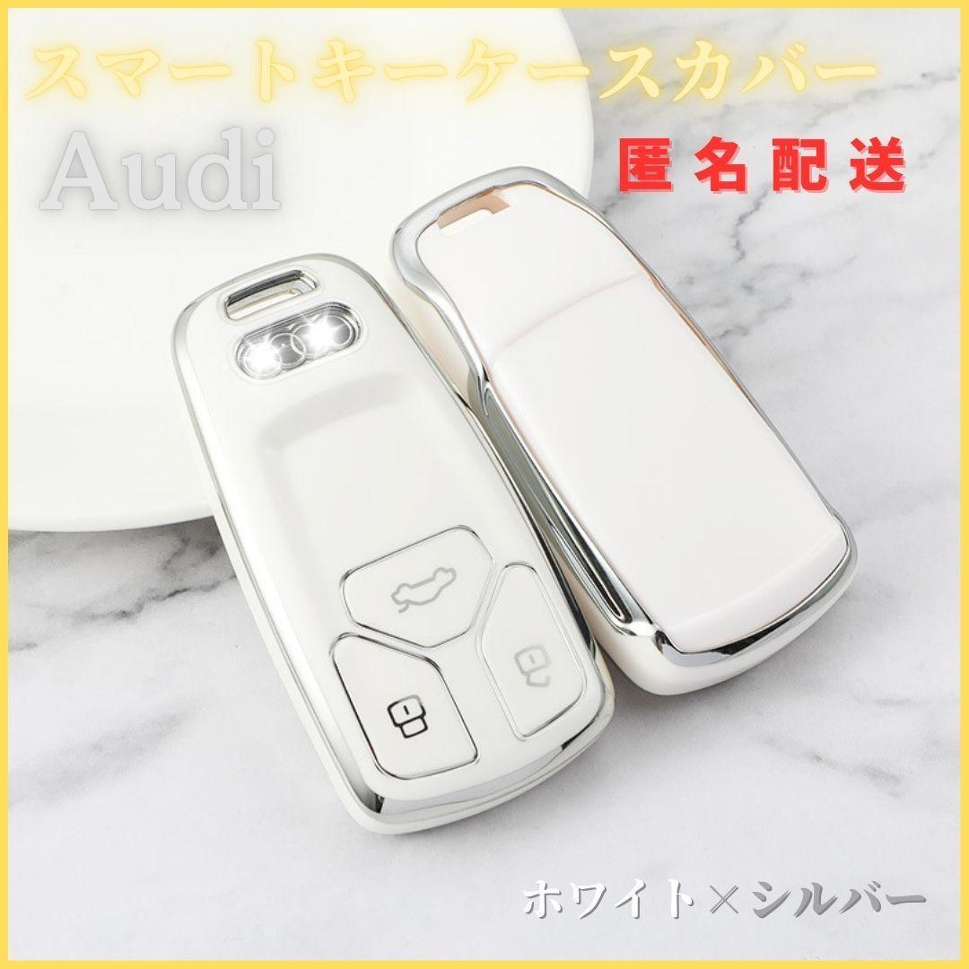 - キーケース キーカバー アウディ Audi スマートキー A4 S4 A5 S5 A6 A7 A8 Q5 Q7 TT TTS TTRS R8 白銀
