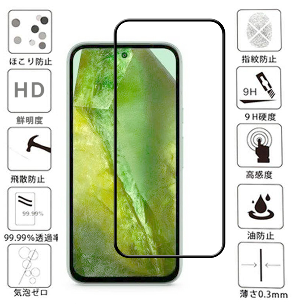 - 黒 Google Pixel 8a ガラス フィルム グーグル ピクセル エイト エー 液晶 画面 頑丈 保護 スクリーン カバー シール シート 9H Glass Film