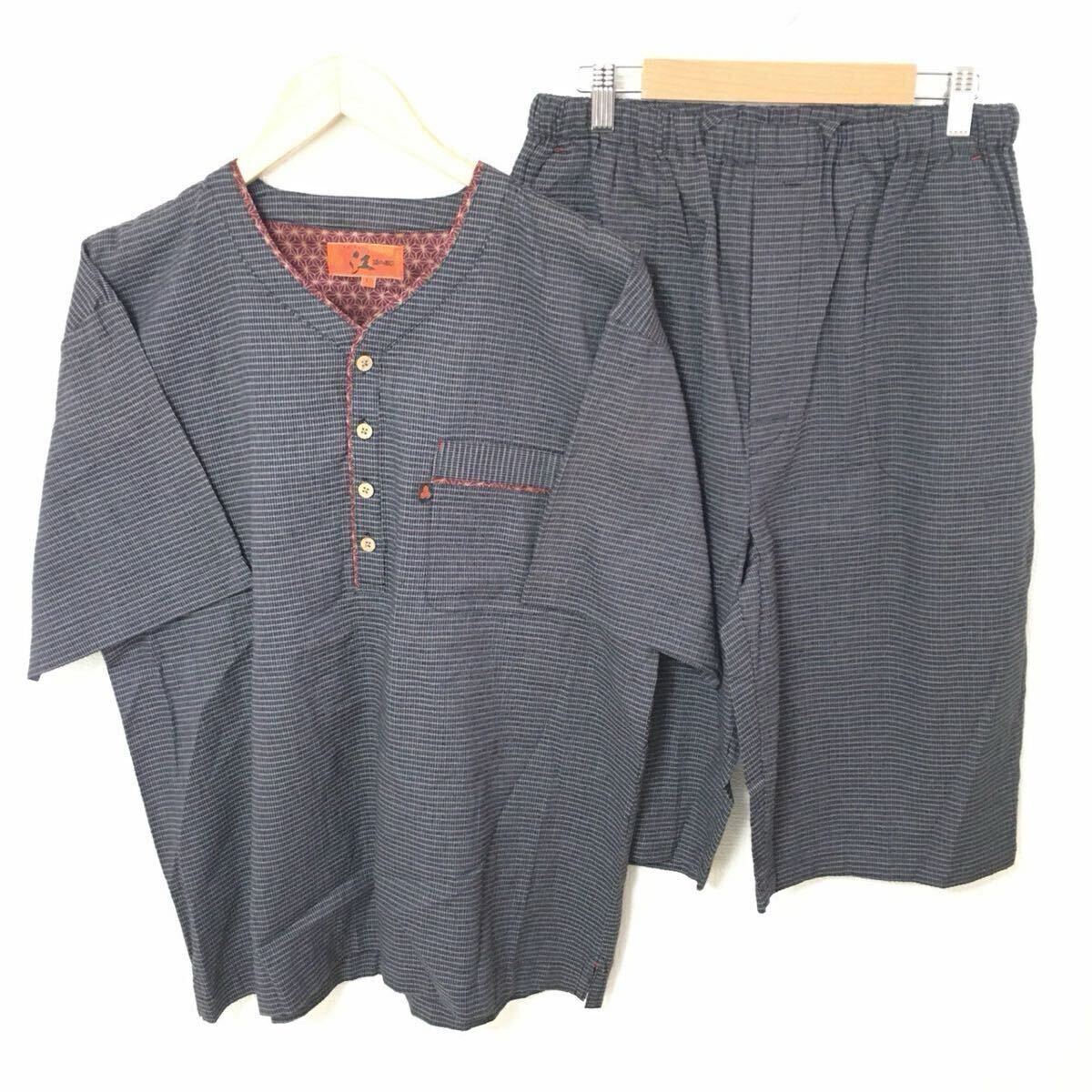 - セットアップ◎希少!【大河ドラマ 江】甚平 上下セット プルオーバー 半袖 ハーフパンツ チェック 部屋着 お祭り メンズ サイズL/Y34019fF