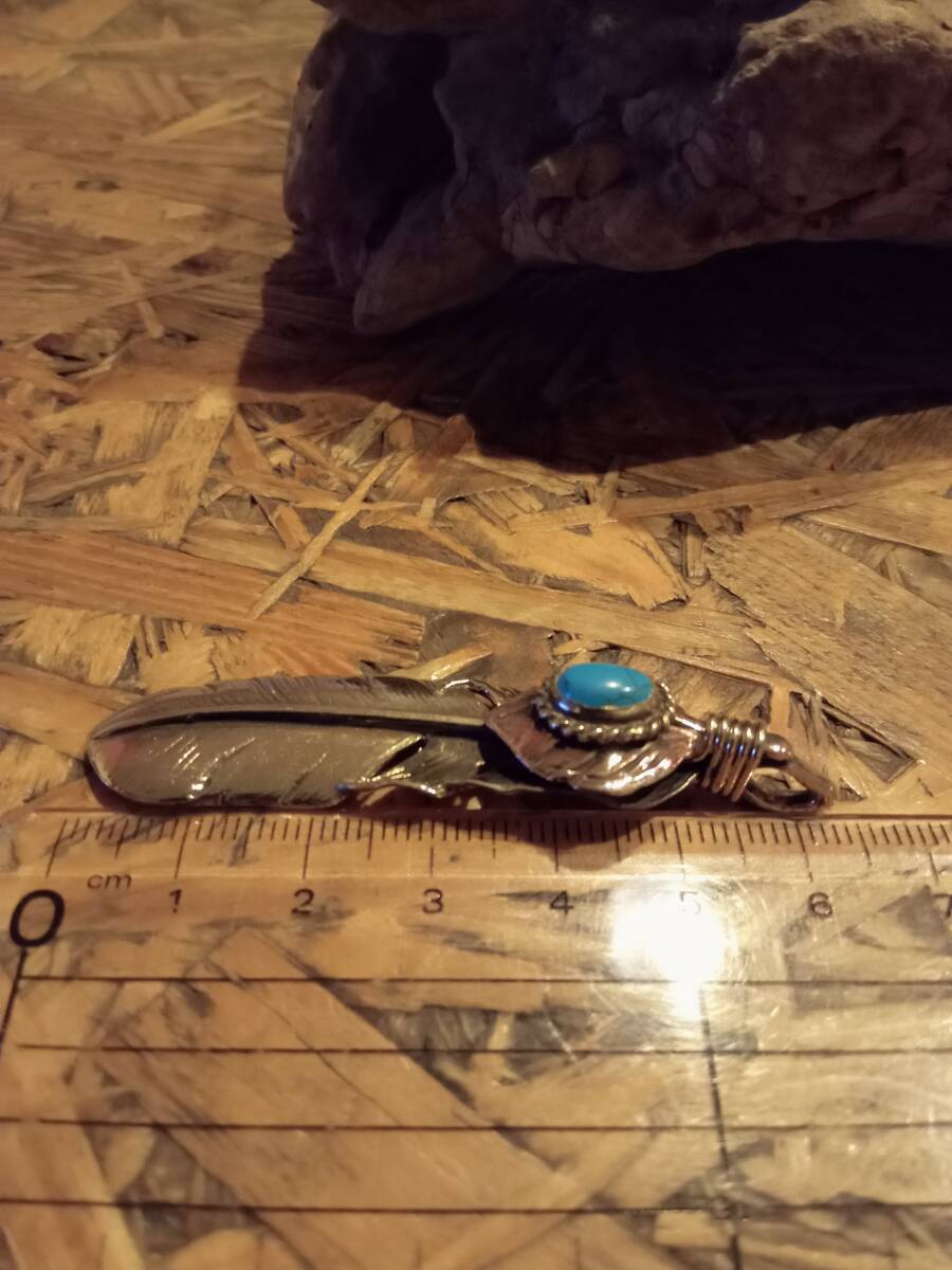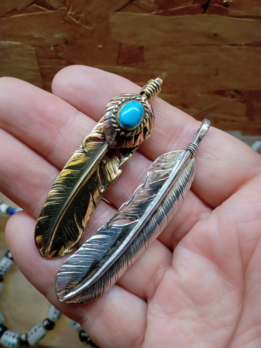 - イーグルフェザー,特大上金金縄ターコイズフェザー,ペンダント,トップ,全金色,ネイティブ,アメリカン,インディアン