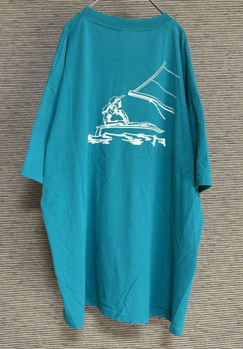 > ヘインズ メキシコ製半袖Tシャツ ヨット セーリング グリーン 緑*4 古着 入手困難 激レア 希少 人気バックプリントワンポイント