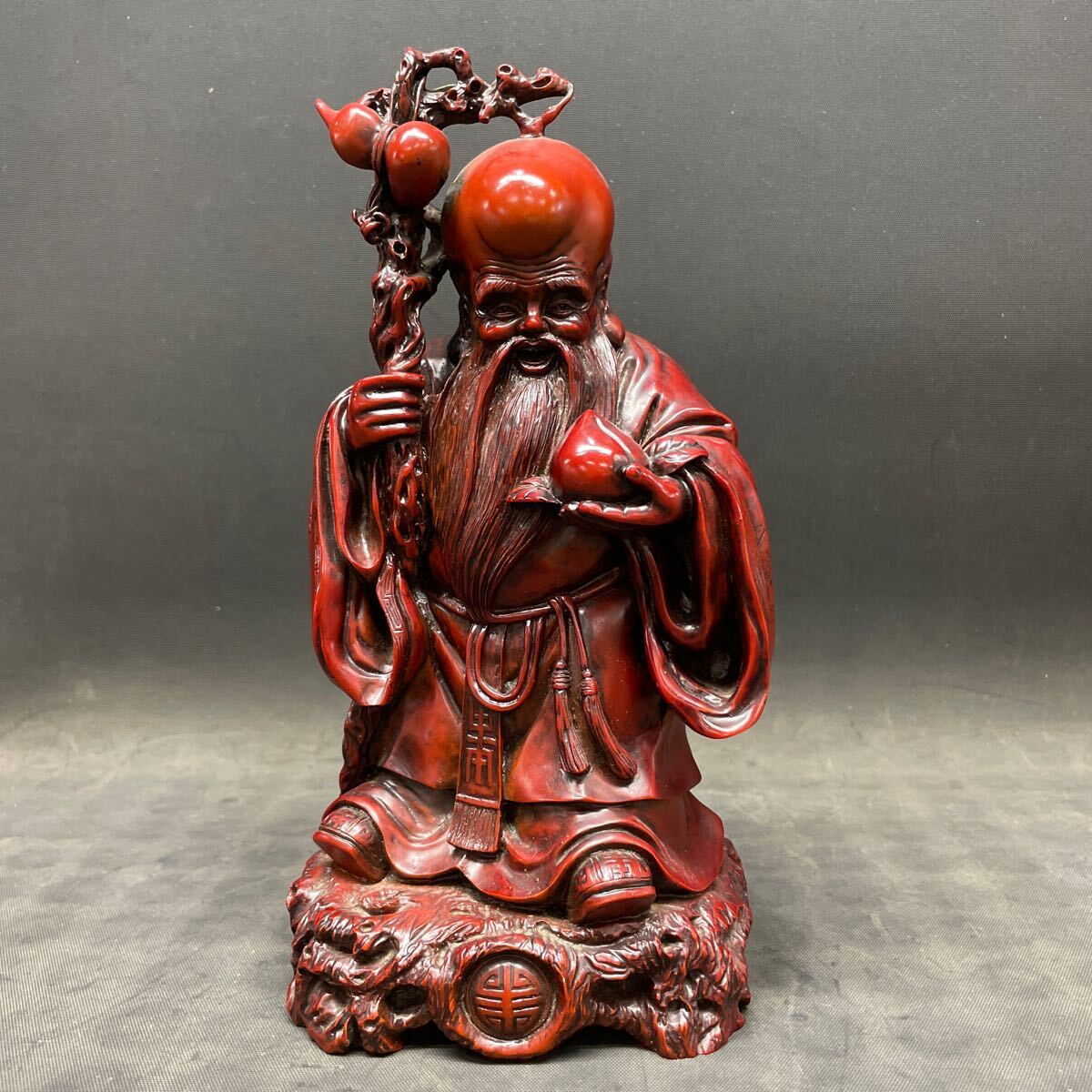 - G2811 【福禄寿 置物】 中国 工芸品 七福神 中古 インテリア 重量3.2㎏ 保管品