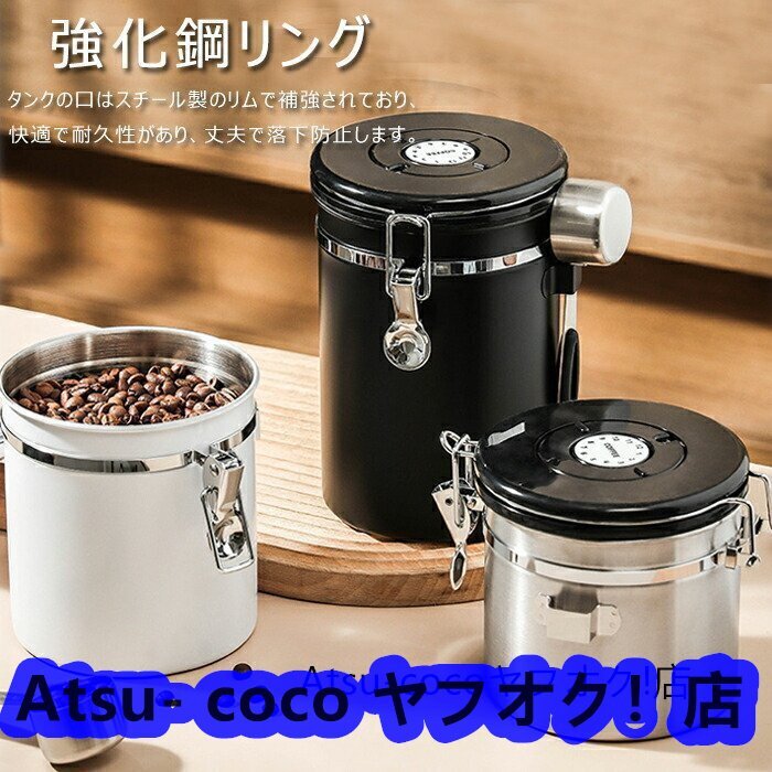 - コーヒーキャニスター コーヒー豆 保存容器 円筒型 密封容器 計量スプーン付き ステンレス製 茶筒 お菓子 糖 ☆3色/1.2/1.5/1.8L選択/1点