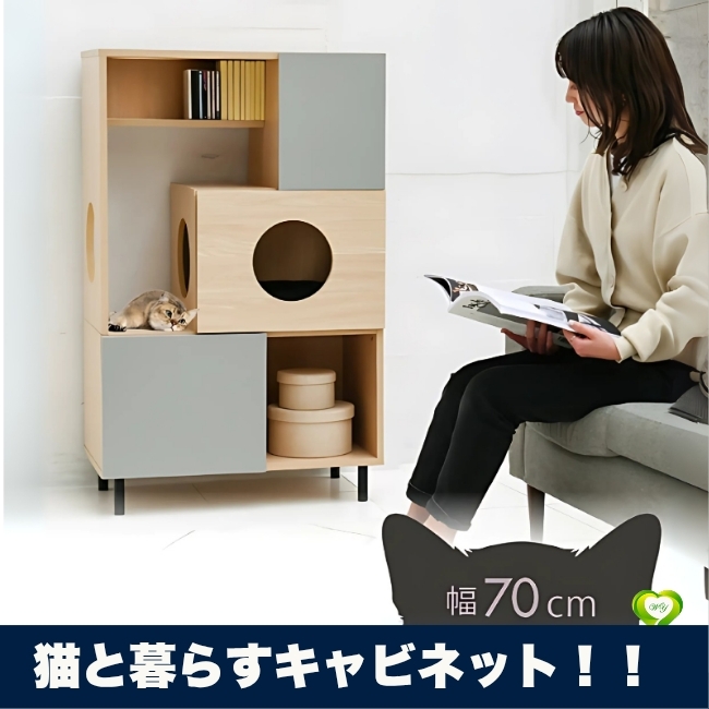 - 【猫と暮らすキャビネット!!】キャットシェルフ 猫家具 TV台 A4収納 PVC加工 スチール脚 人気 おすすめ