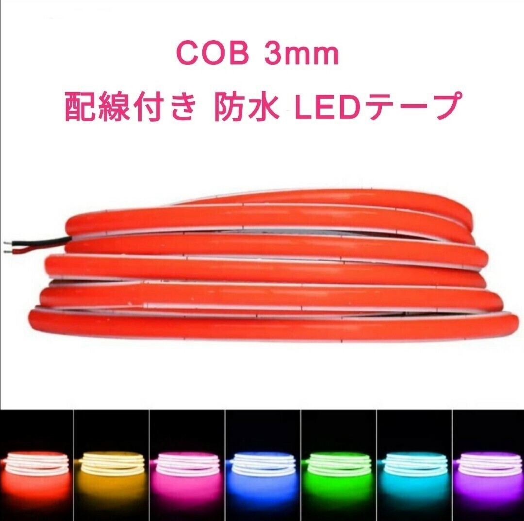 > 40cm COBタイプ 防水 LEDテープ 3mm幅■配線付き【オーダー可能!】1本 LEDテープライト 12v 正面発光■赤白黄水青緑ピンク