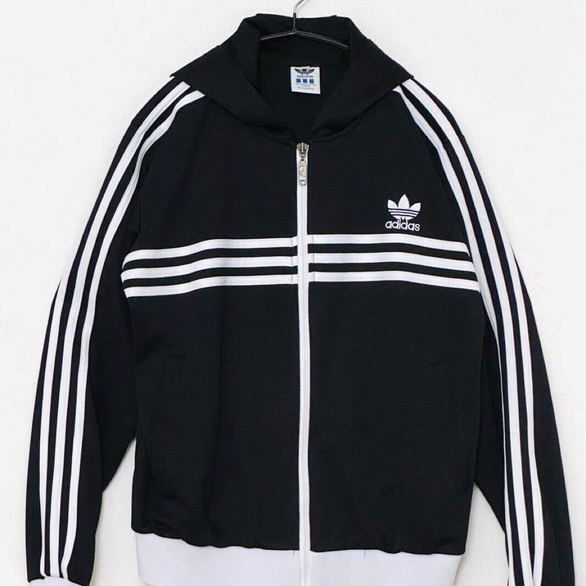 - 【激レア】adidas Originals デサント トラックジャケット フルジップ 黒×白 スリーストライプス×横ライン デザイン◎