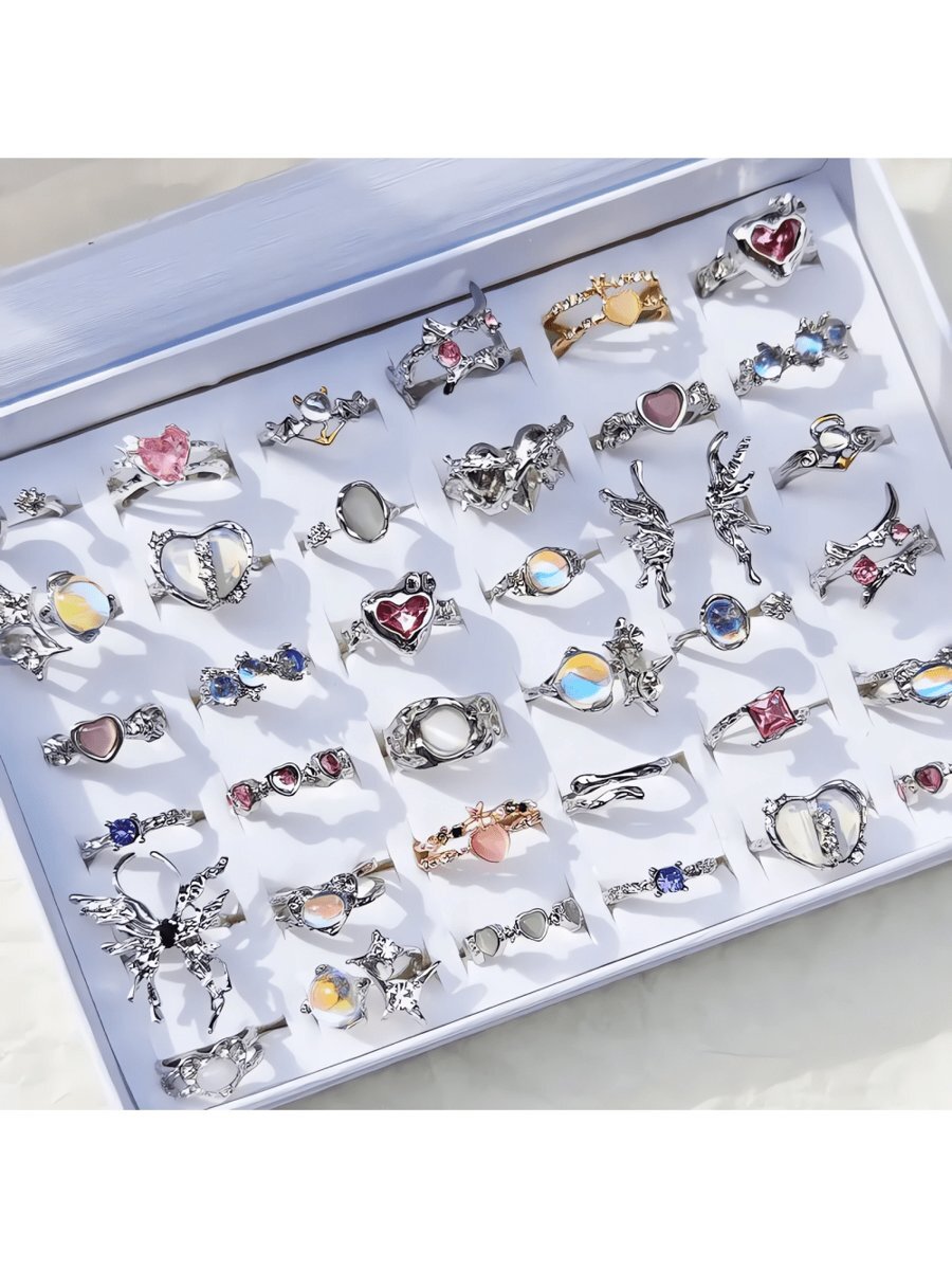 - リング レディース セット 10個 エクスクイジットピンクジルコニア ハート愛蝶々リングセット レディース ミックススタイル ファ