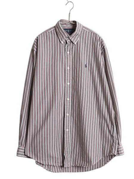 > 90s ラルフローレン ストライプ 3点留め 長袖 ボタンダウン シャツ メンズ M / 古着 オールド ポロ BD 長袖シャツ ワイシャツ ワンポイント