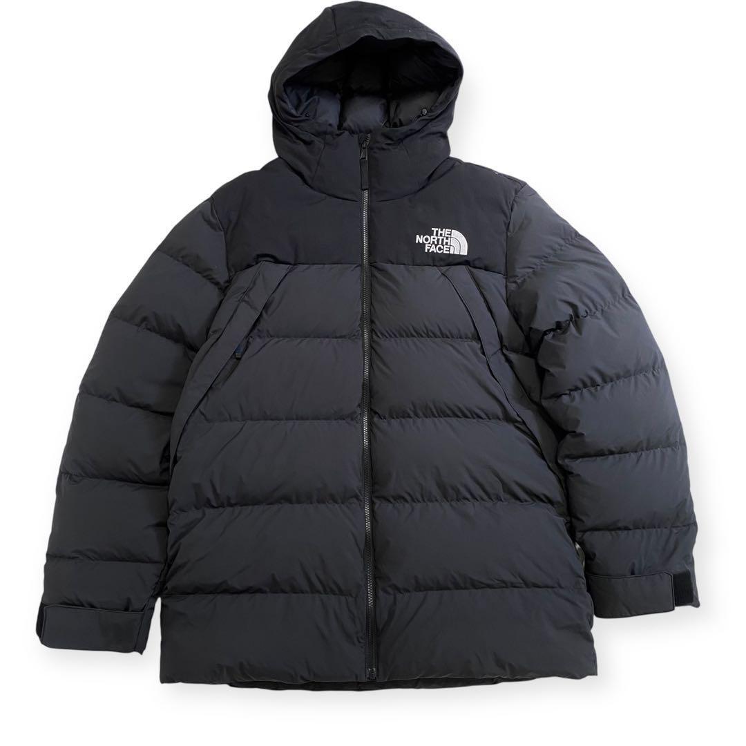 > 【極美品/定番人気L】THE NORTH FACE ノースフェイス ダウンジャケット 黒白 ブラック ロゴ刺繍 ゆったり 大きめサイズ フード 防寒 秋冬