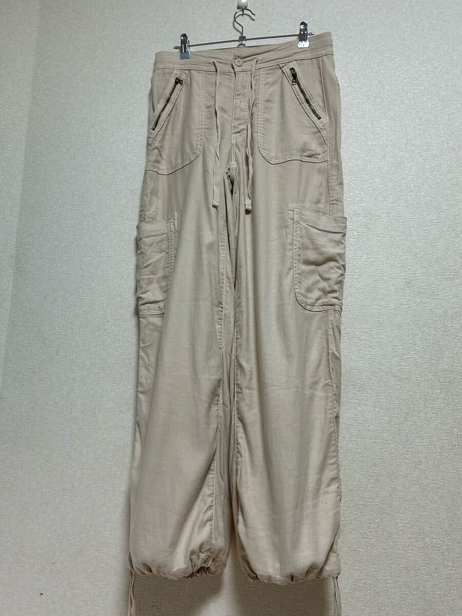 - 【 AMERICAN EAGLE★アメリカンイーグル】麻混素材カーゴパンツ・ストレッチ入り・やや薄手・アイボリー・サイズ2