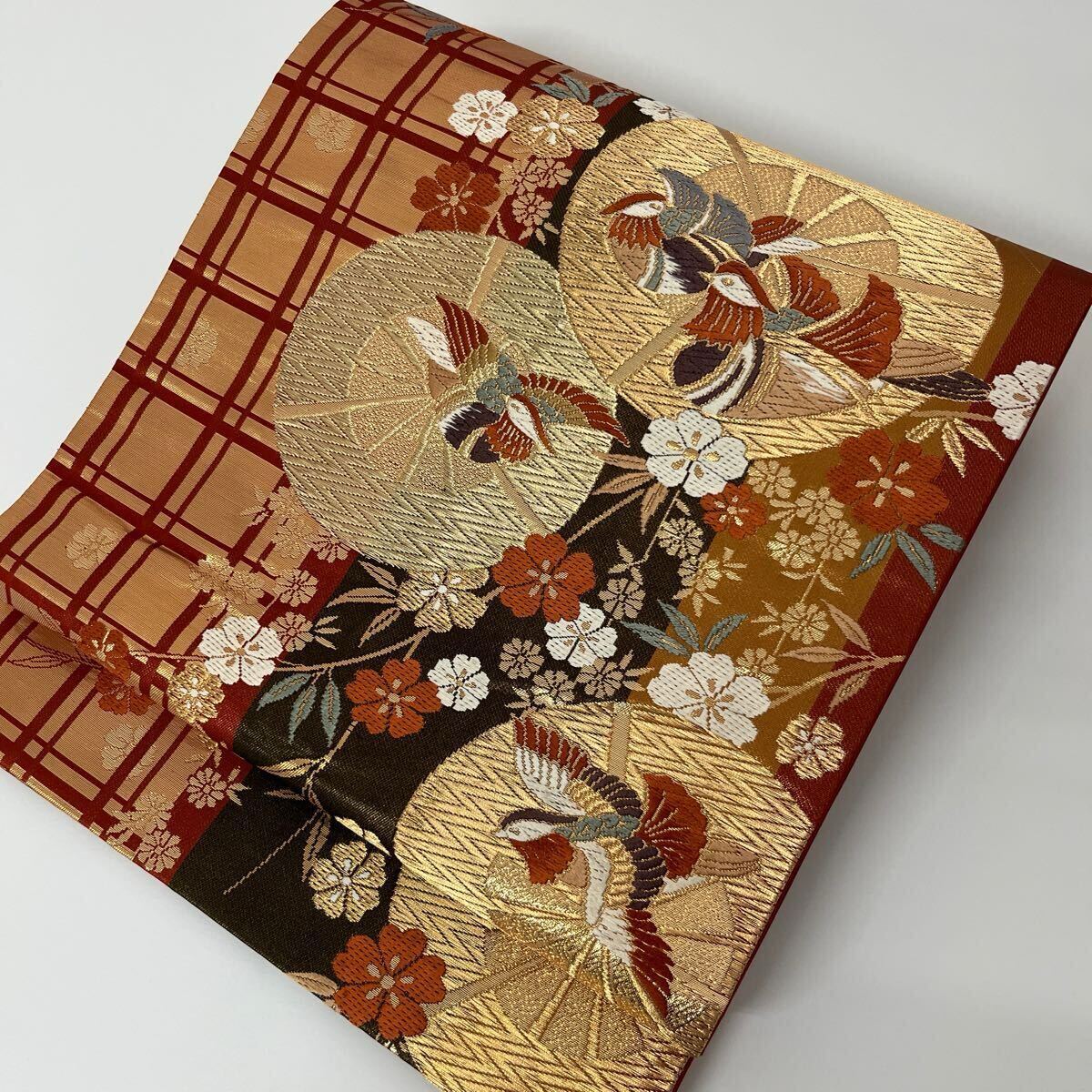 - 袋帯 唐織 本金糸 丸に鳥 織出し 正絹 着物 W-2709