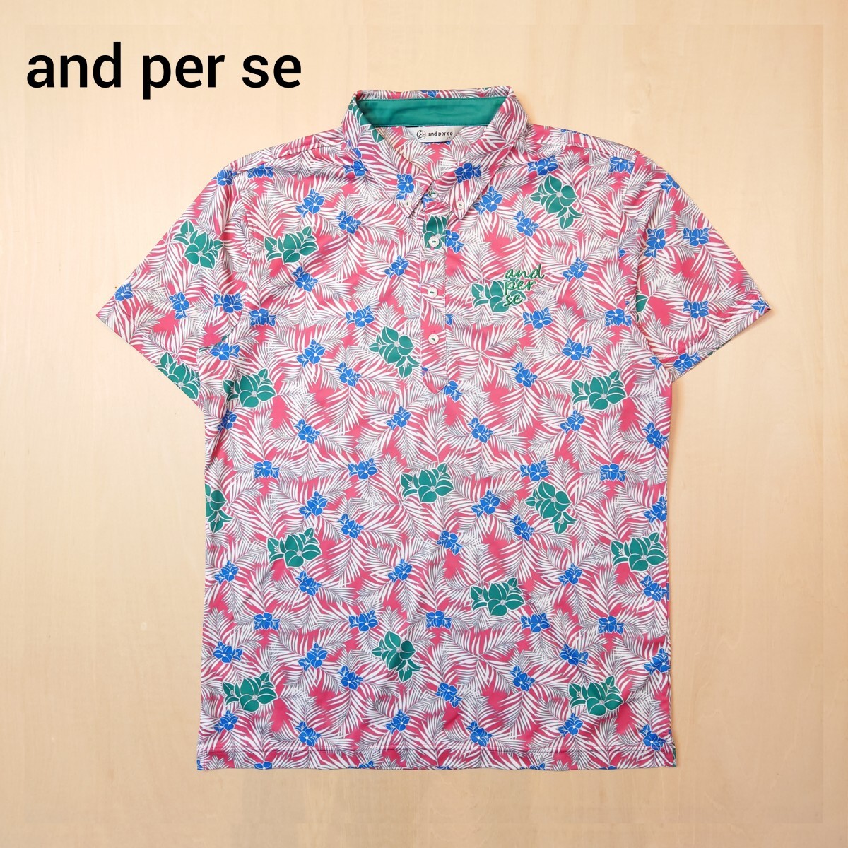 - and per se 半袖ポロシャツ ゴルフウェア 花柄 アンパスィ サイズLL 2506