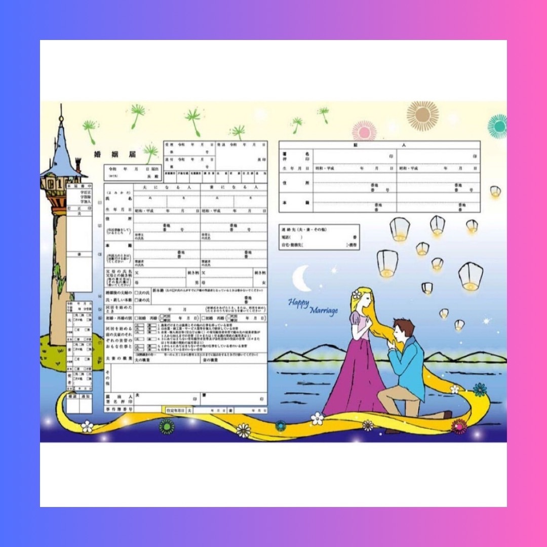- ハイデザイン婚姻届 「 ラプンツェル 」3枚セット<令和版>