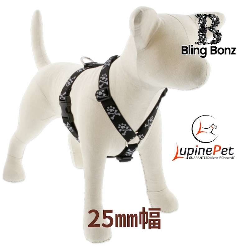 > ローマンハーネス・Lサイズ 25mm幅 ブリングボンズ柄Bling Bonz 50-80cm LUPINEルパイン アメリカ製 軽量 丈夫 大型犬