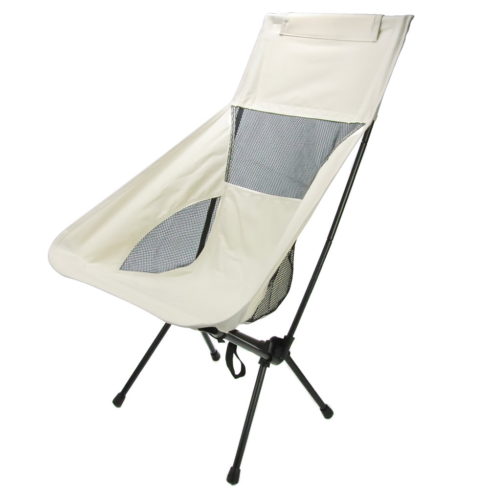 - アウトドア キャンプ用 折りたたみチェア 高背タイプ コンパクト収納 キャンプ椅子 折りたたみ式 メッシュ付き 収納袋付き ベージュ色 1個