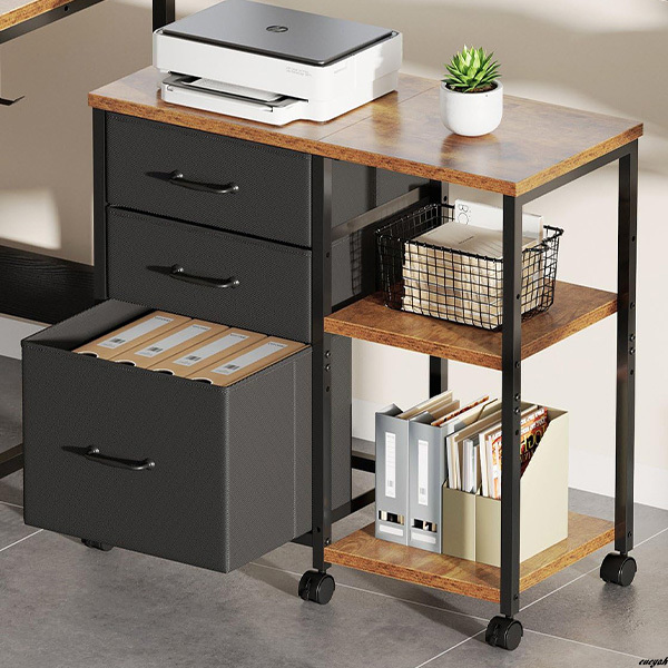- 【収納スペースをカスタマイズ可能なキャビネットワゴン】 布製サイドワゴン 幅70cm A4書類収納 ナイトテーブル 木製天板 ビンテージ