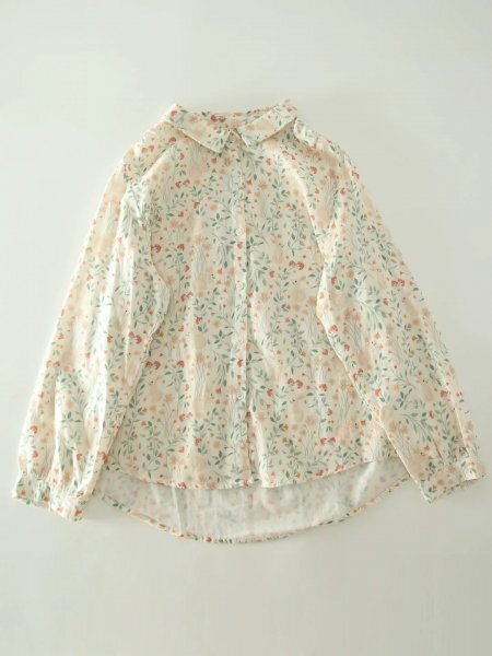 - yh ワイシャツトップス チュニック フリーサイズ 綿100% ダブルガーゼ ナチュラル サラサラ 通気性肌触り抜群 大人可愛 プリント花柄1