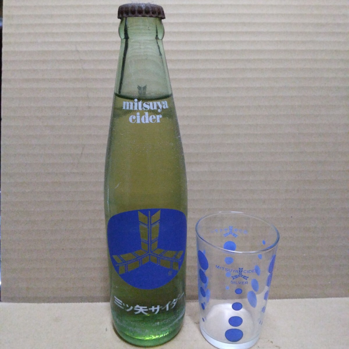 - 昭和レトロ 瓶入り 三ッ矢 サイダー グラス付き 当時物。