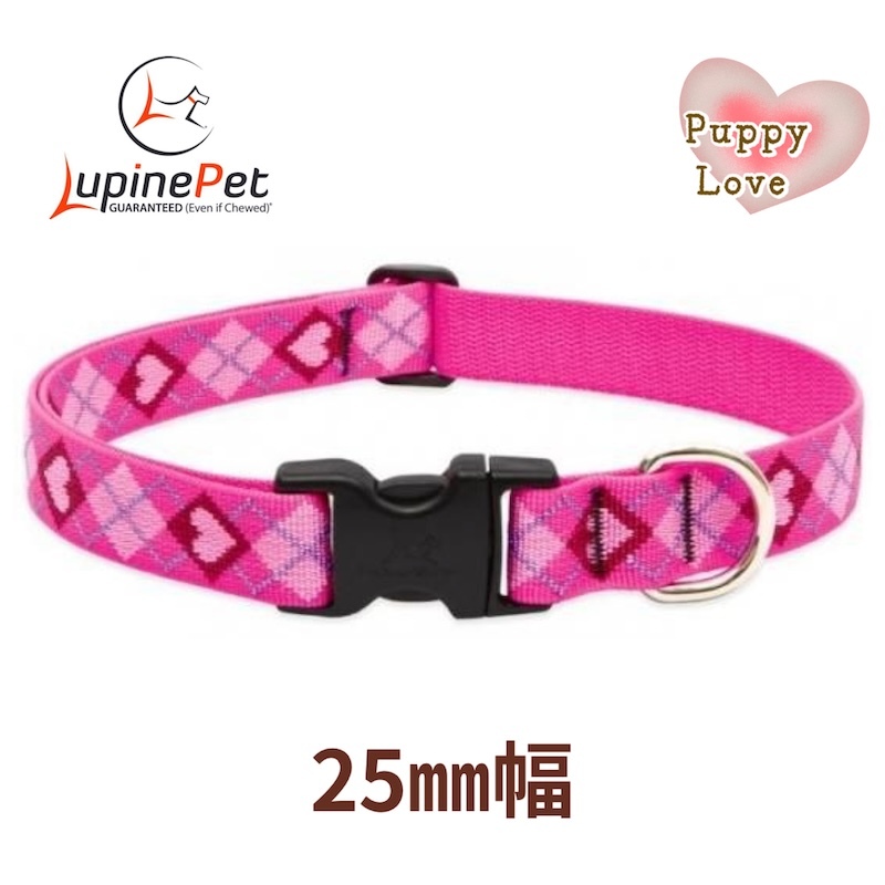 > ワンタッチ首輪・Mサイズ・25mm幅 パピーラブ柄 40-71cm LUPINEルパイン アメリカ製 軽量 丈夫 中型犬・大型犬