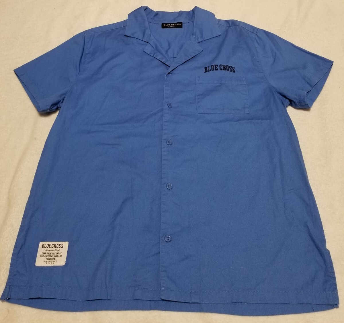 > BLUE CROSS ブルークロス 160cm 半袖シャツ ブルー ロゴ刺繍入り ロゴ入りタグ付き