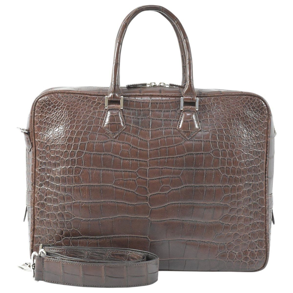 - クロコダイル 美品 リアル マットクロコダイル アリゲーター 超豪華 2way ビジネスバッグ 書類鞄 ブリーフケース ブラウン