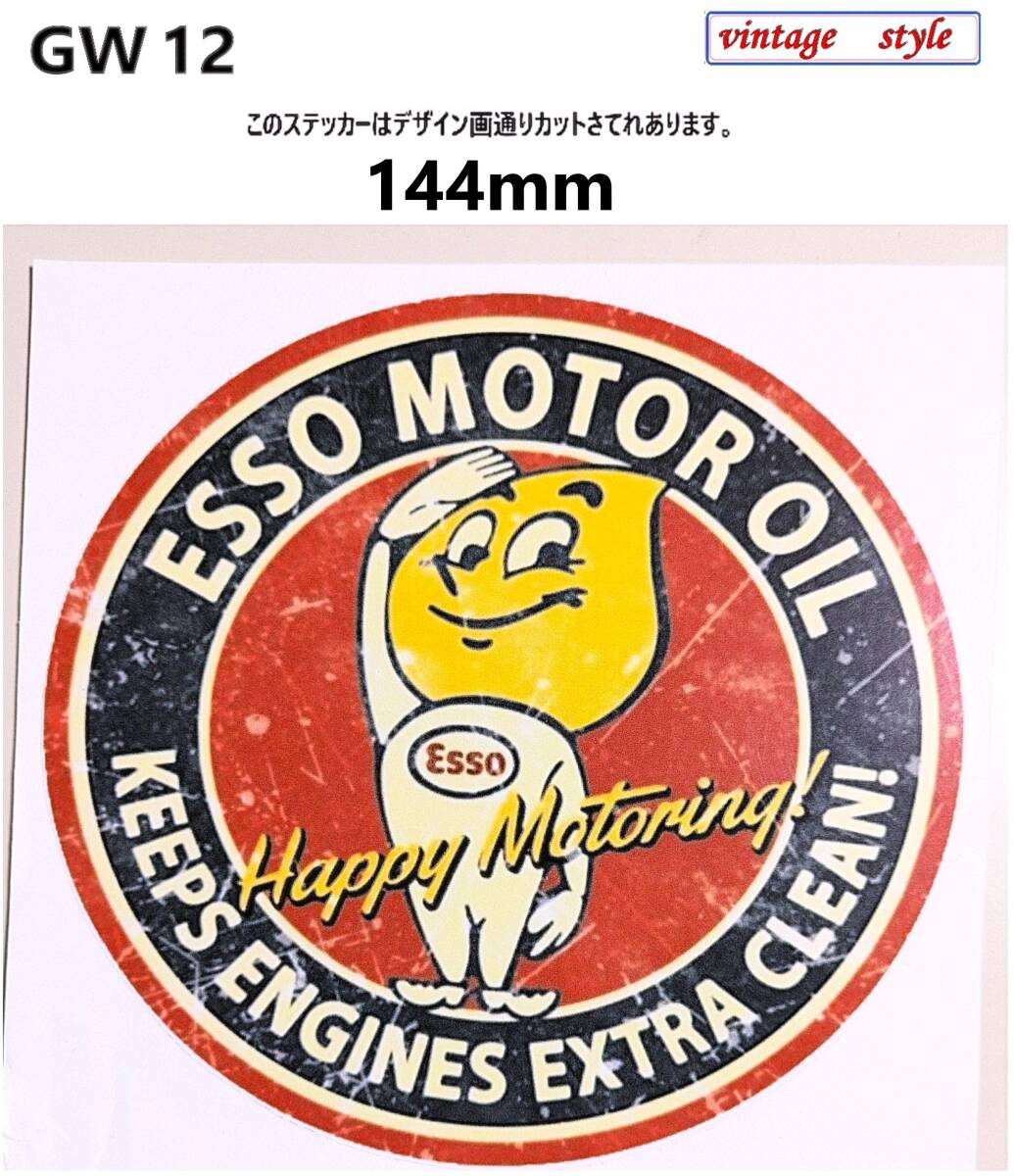 > GW12-01 特価 ヴィンテージスタイル ESSO エッソ ガソリンステッカー モーターオイルステッカー ダメージ加工 レトロ ガレージ