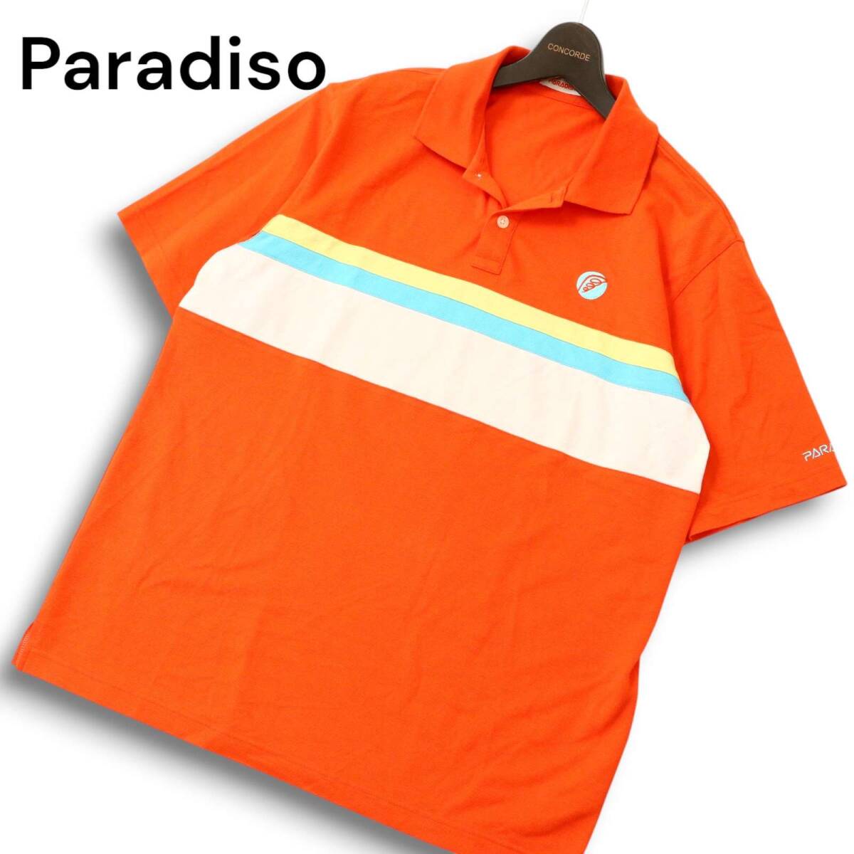 - Paradiso パラディーゾ ゴルフ 春夏 ロゴ刺繍★ 半袖 ボーダー 鹿の子 ポロシャツ Sz.LL メンズ 大きいサイズ オレンジ
