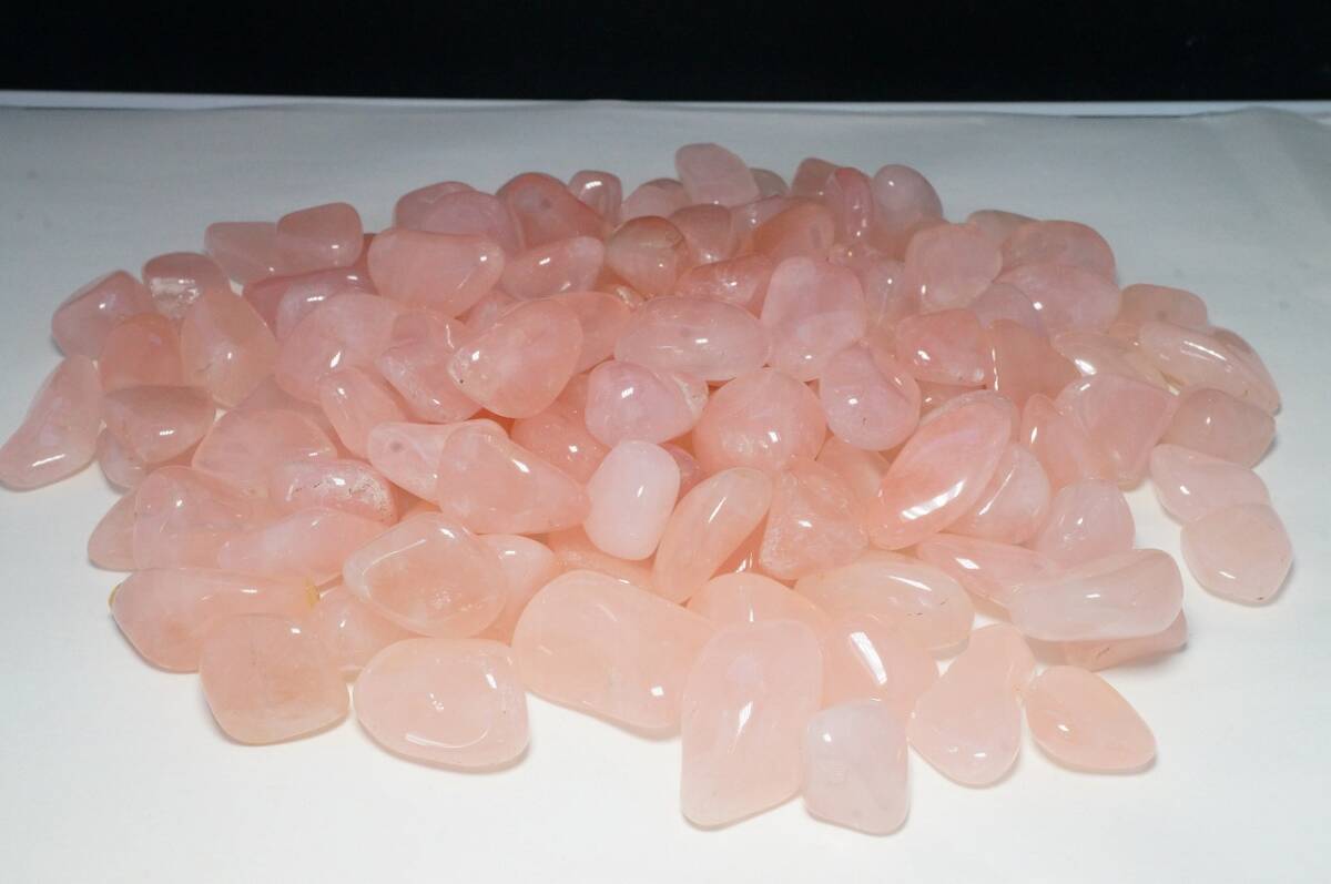 > 【即決特別価格!早い者勝ち】30年前の在庫なので上質!ピンクが綺麗な透明度ありローズクォーツ原石タンブル研磨石まとめて(紅水晶)500g