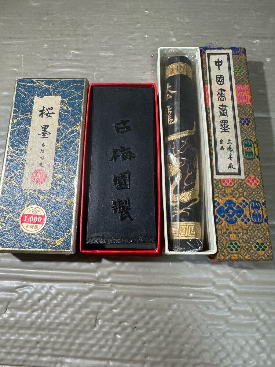 - K499 【 書道具 墨 2点 】 (中国 墨 龍 ・桜墨 古梅園造 使いかけ) 文房四宝 古墨 書道具 唐墨