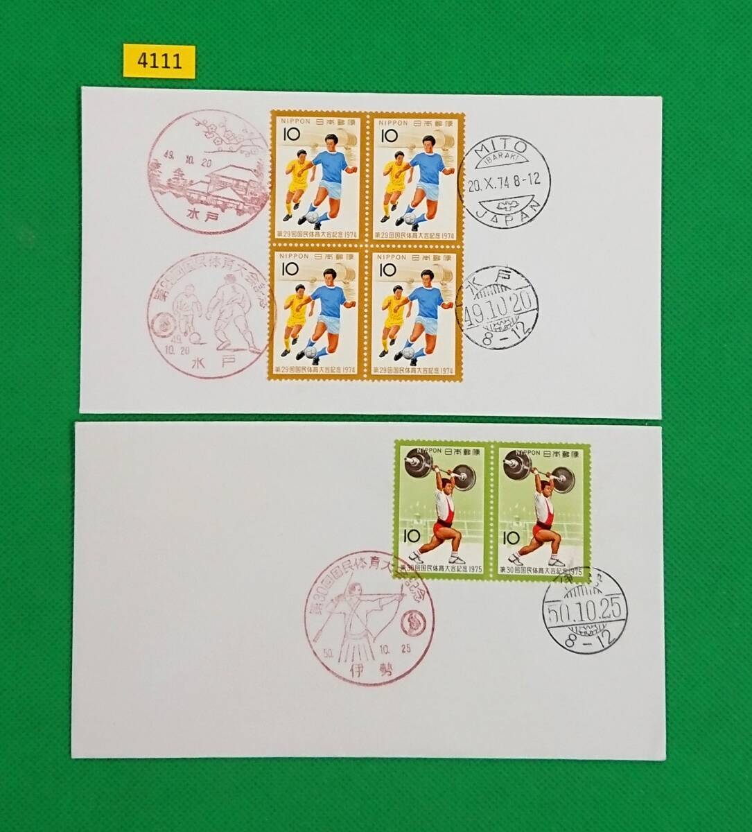- FDC/第29回/第30回国民体育大会/2種/初日印/水戸記念印/伊勢記念印他/解説書無し/1974年10月20日/1975年10月25日/初日カバー/№4111