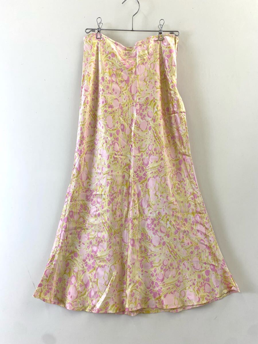- ★ TOCCA シルク マーメイド ロングスカート イエロー/ピンク サイズ2 ◆ 絹 総柄 USA製 トッカ ◆W2 UゆHI3-03