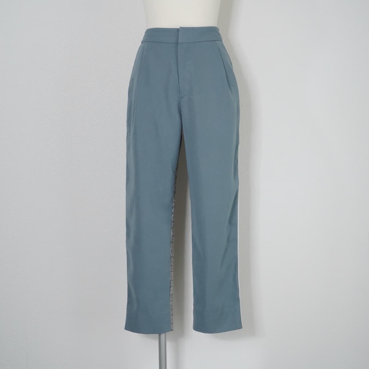 コメント:異なる素材を合わせたテーパードイージーパンツ。チェック柄とくすんだブルーの切替デザインで、サイドのラインもポイントです。
