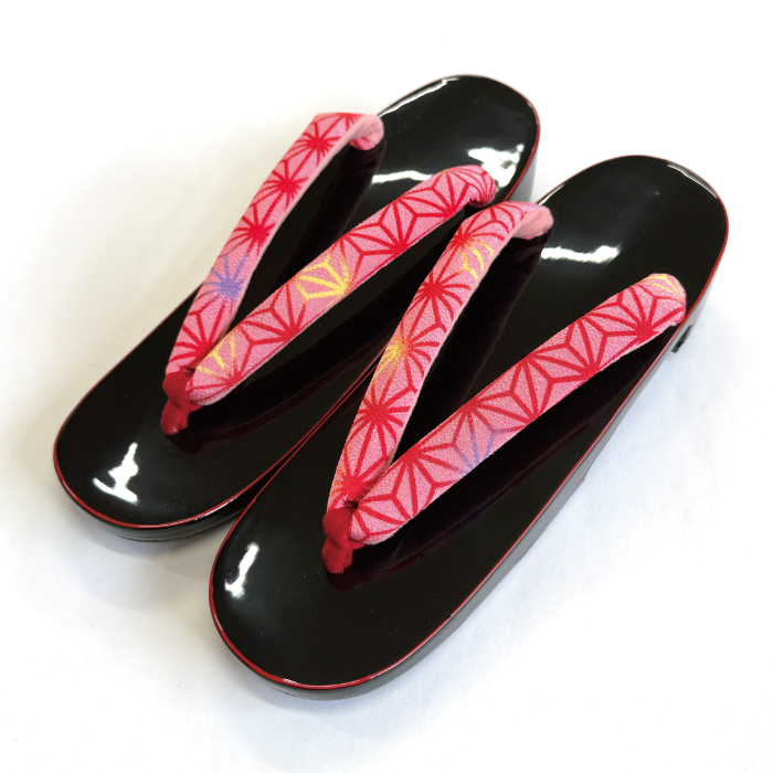 - Lサイズ 黒塗桐下駄 女性 履物 レディース 浴衣 ゆかた げた ゲタ 和装小物 夏着物 ピンク 鼻緒 大きい 麻の葉柄