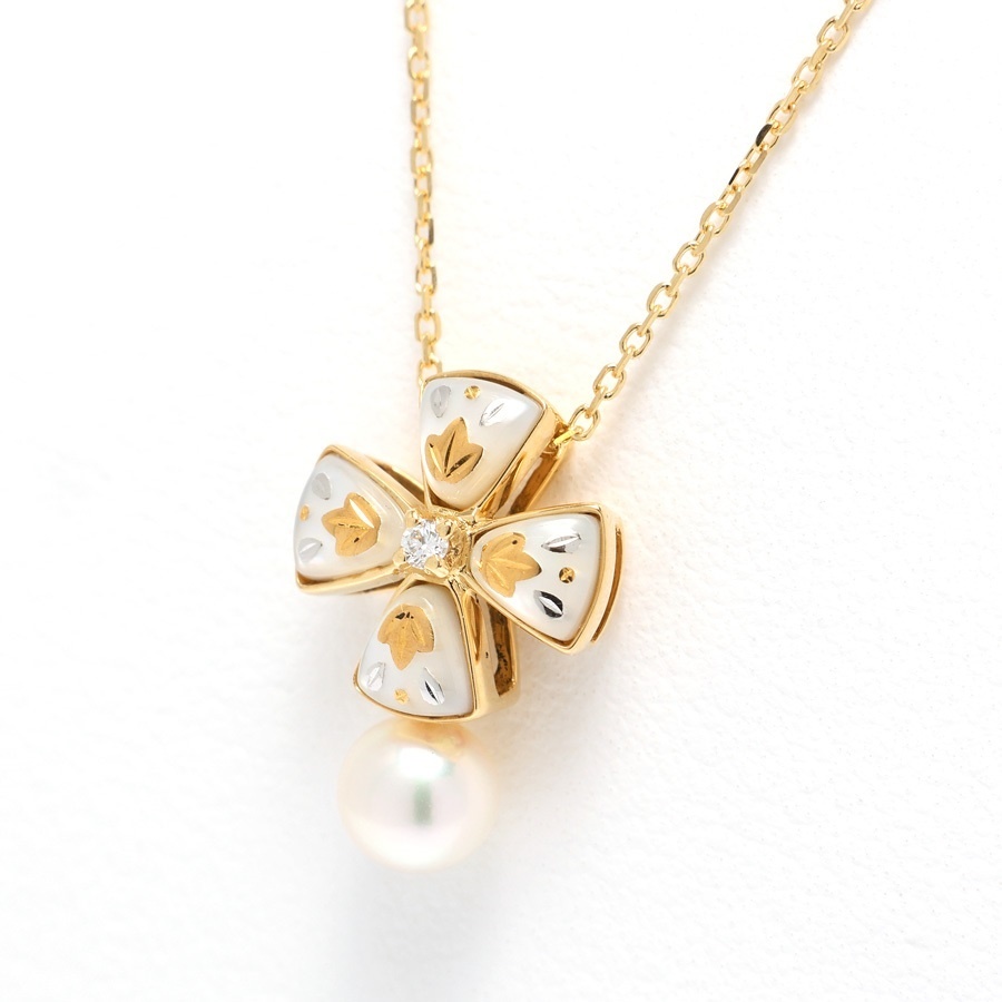 > ミキモト ピクウェ ネックレス K18YG/WG パール/ダイヤモンド/マザーオブパール 40 cm【中古】H-158624 新入荷