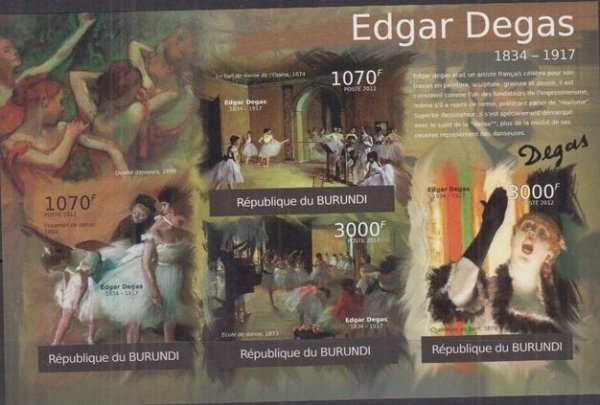 - ブルンジ切手『エドガー・ドガ』4枚シート 無目打 2012