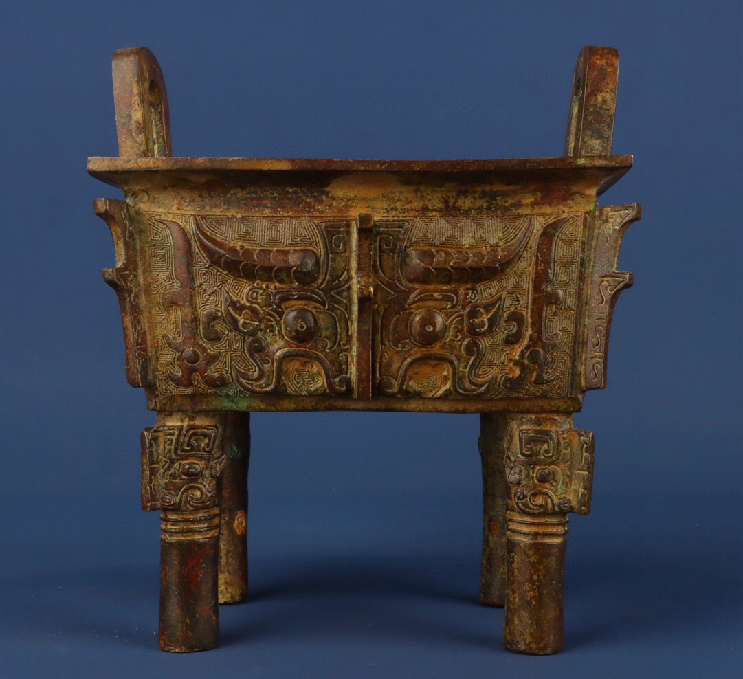 - 【仁】『西周・青銅製・獣面方鼎・青銅器・置物・賞物』極細工 古賞物 古董品 中国古玩 古美術 古美味 時代物 旧家蔵出