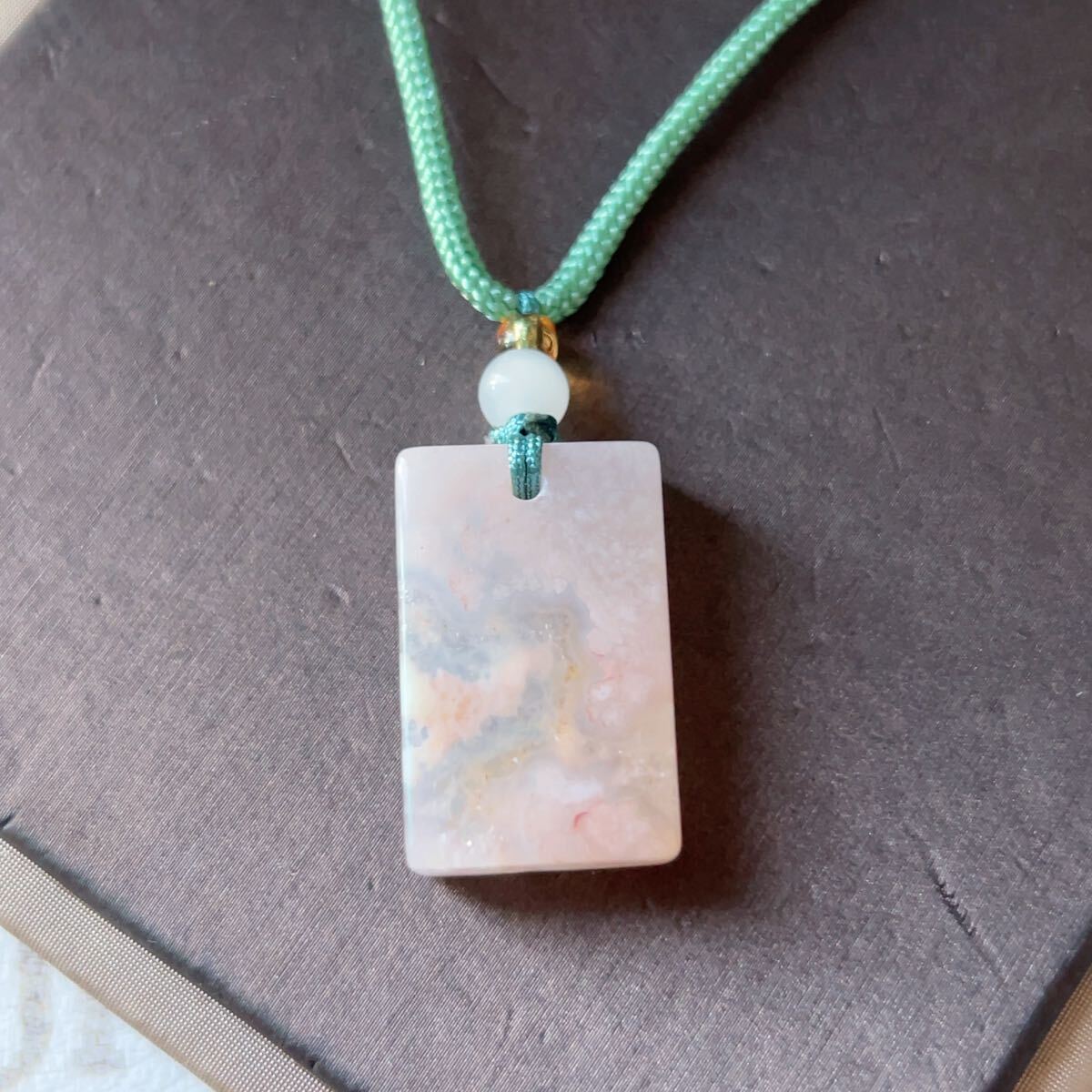 > ◇桜瑪瑙(チェリーブロッサムアゲート)◇ネックレス◇ペンダント◇無事プレート◇お守り◇天然石◇パワーストーン◇巾着袋付き◇020P71910