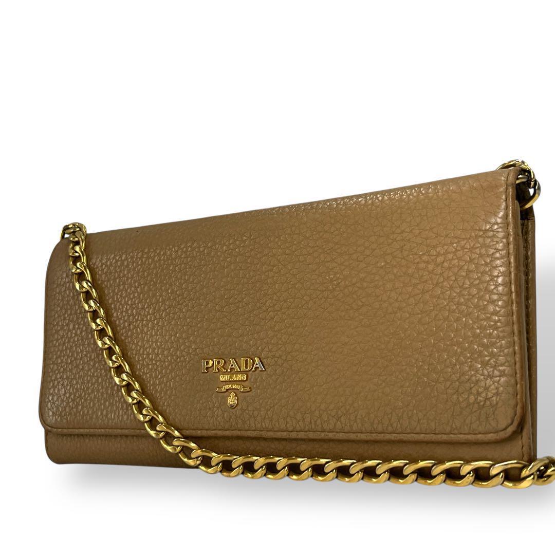 - PRADA プラダ チェーンウォレット 長財布 ゴールドロゴ ショルダーバッグ ベージュ ゴールドチェーン ロングウォレット