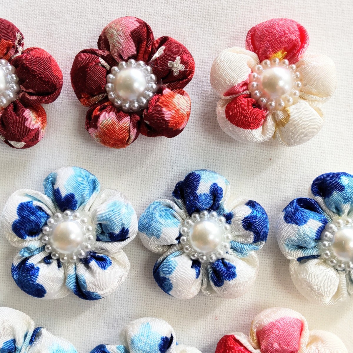 > 10個 和風 和柄 パールストーン付き ふんわりお花 モチーフ パーツ ハンドメイド
